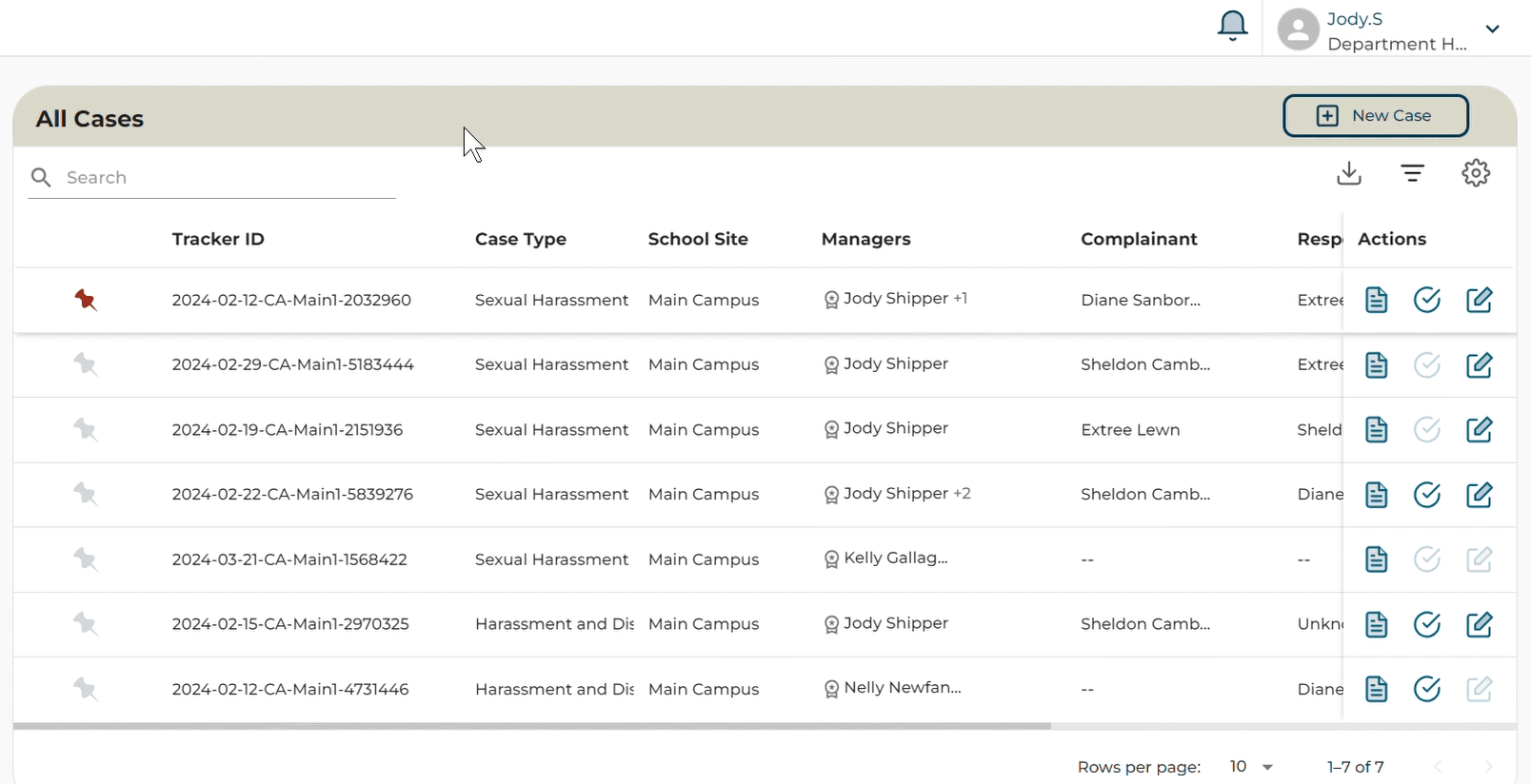 - Click on the All Cases or My Cases Tab on the Left Navigation Menu to view cases in a table view.