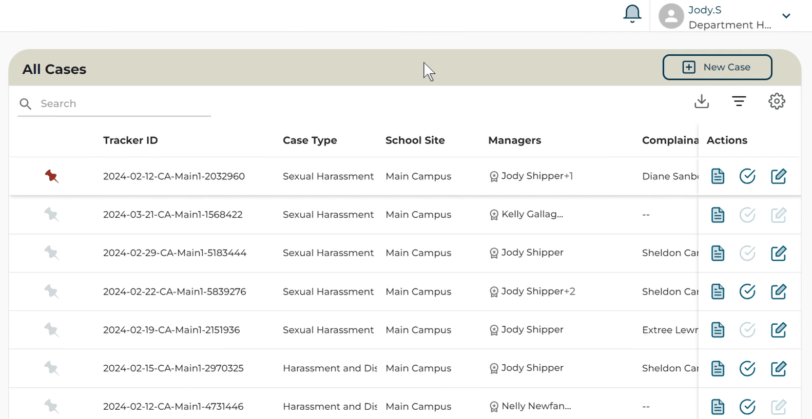 The Manage Case Screen provides more details about a case. Select the case that you want to view by clicking on the Tracker ID to open the Case Details Screen.![]()