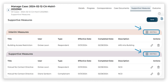 Click Add New next to the type of supportive measure that you would like to add.![]()
